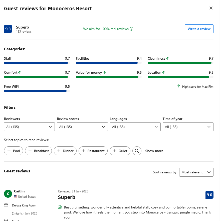 - มีความได้เปรียบเหนือคู่แข่งอย่างชัดเจน: มอบประสบการณ์การอยู่ "ใน" ธรรมชาติ ไม่ใช่แค่ "ข้างๆ" ธรรมชาติ