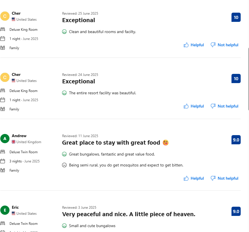 - ข้อสังเกต: ป่าไม้ที่หนาทึบทำหน้าที่เป็นกำแพงธรรมชาติที่สมบูรณ์แบบ บดบังรีสอร์ทจากสายตาและเสียงรบกวนของพื้นที่โดยรอบอย่างสิ้นเชิง