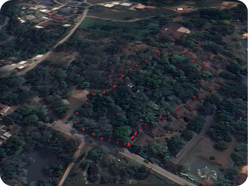 - ข้อสังเกต: สิ่งที่โดดเด่นที่สุดคือ ความหนาแน่นของเรือนยอดเกือบ 100% ทั่วทั้งพื้นที่ 4 ไร่ เราแทบจะไม่เห็นพื้นดินหรือหลังคาของสิ่งปลูกสร้างเลย เรือนยอดของต้นไม้เชื่อมต่อกันเป็นผืนป่าผืนเดียว